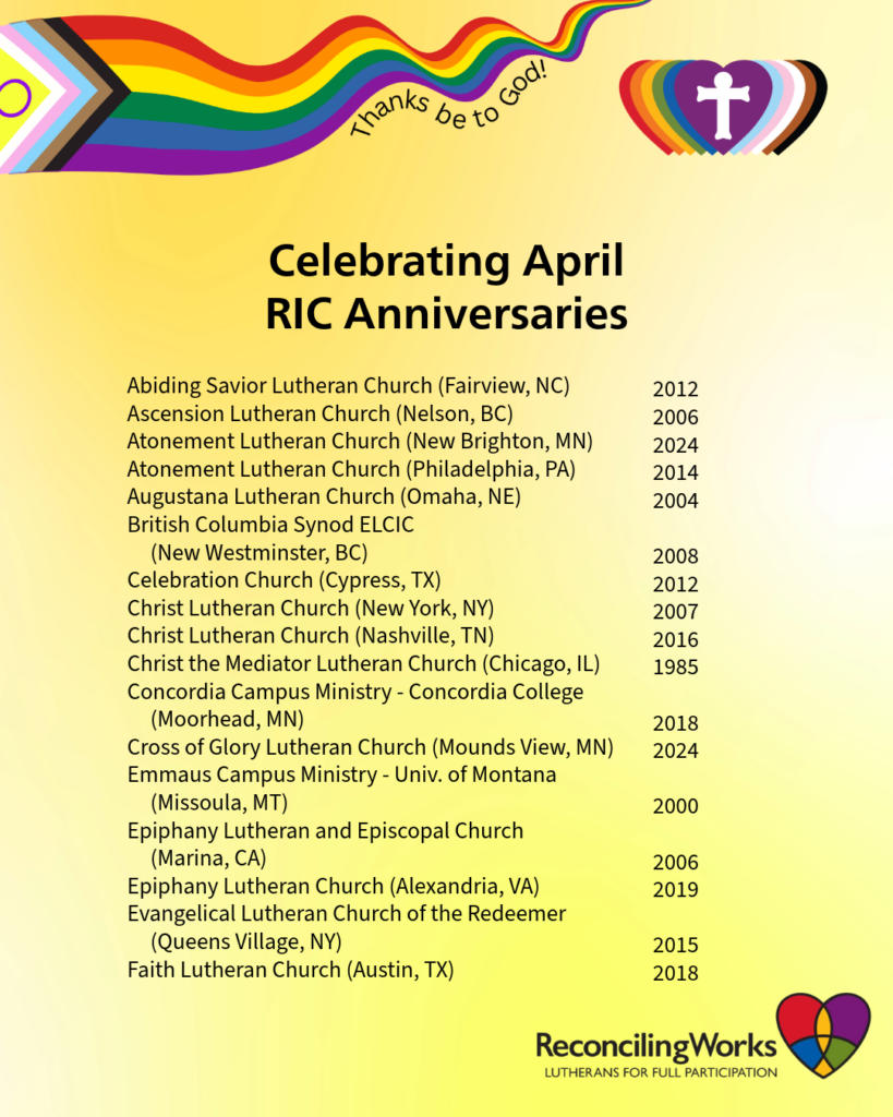 ReconcilingWorks extends deep gratitude and joy for our partnerships through the Reconciling in Christ (RIC) program.