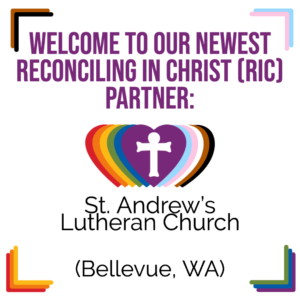 Help ReconcilingWorks welcome the newest Reconciling in Christ (RIC) community: St. Andrew’s Lutheran Church (Bellevue, WA).