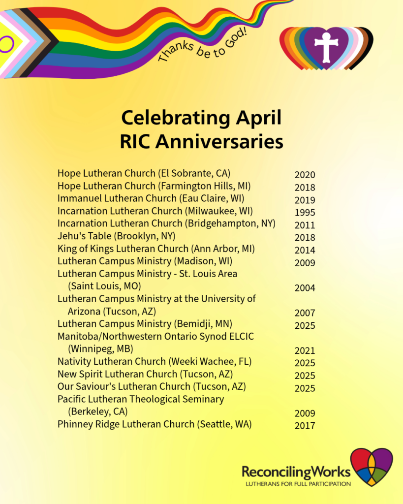 ReconcilingWorks extends deep gratitude and joy for our partnerships through the Reconciling in Christ (RIC) program.