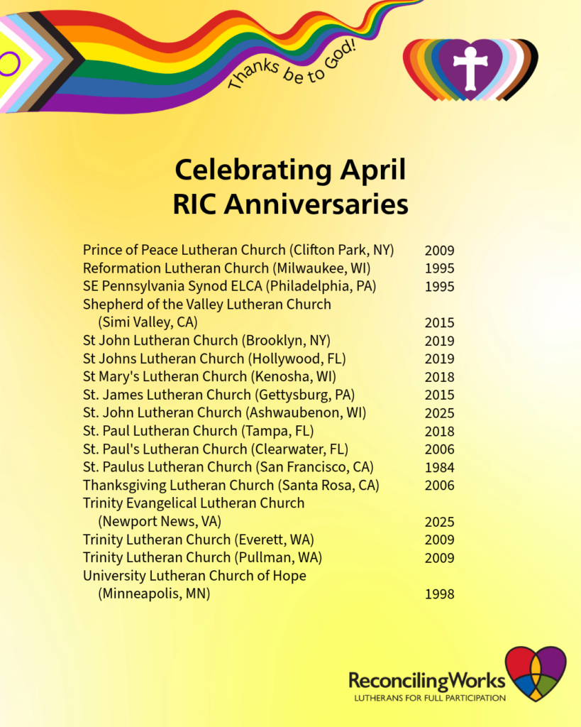 ReconcilingWorks extends deep gratitude and joy for our partnerships through the Reconciling in Christ (RIC) program.