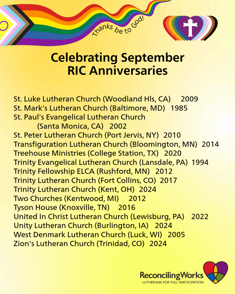 ReconcilingWorks extends deep gratitude and joy for our partnerships through the Reconciling in Christ (RIC) program.