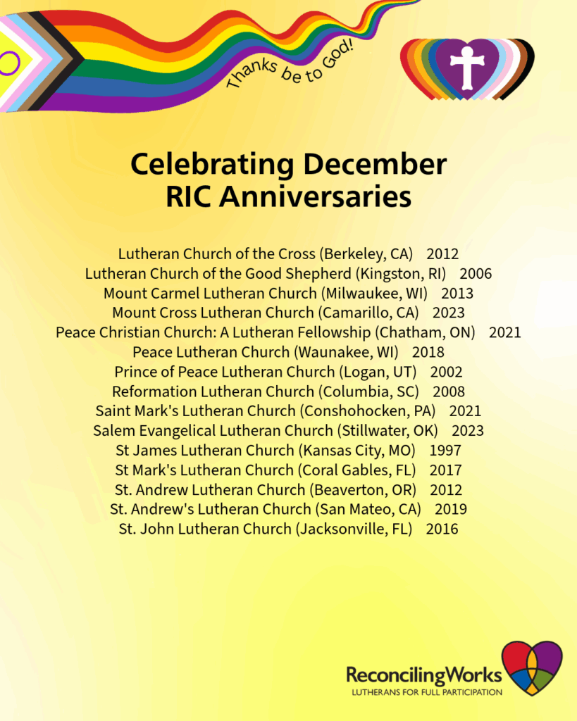 ReconcilingWorks extends deep gratitude and joy for our partnerships through the Reconciling in Christ (RIC) program.