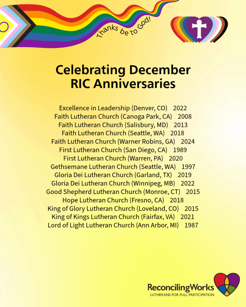 ReconcilingWorks extends deep gratitude and joy for our partnerships through the Reconciling in Christ (RIC) program.
