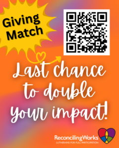Today is the final day to have your year-end gift to ReconcilingWorks matched dollar-for-dollar through our $5,000 Board Match.
