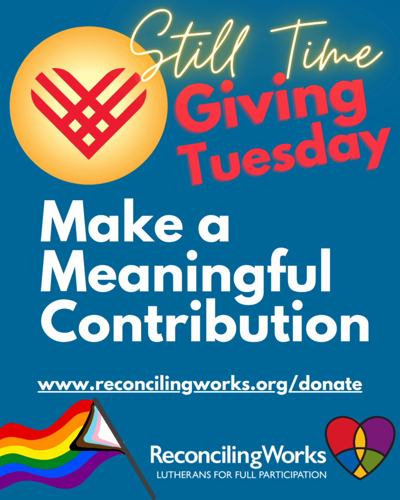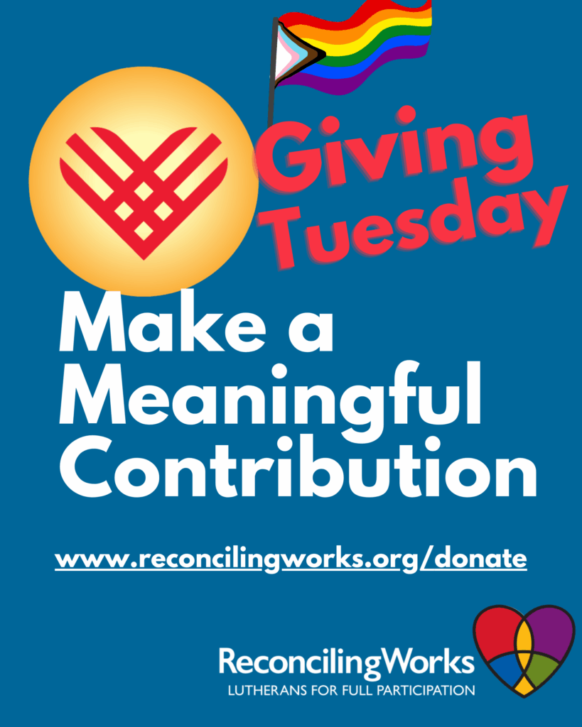 This Giving Tuesday, we invite you to help further the mission of ReconcilingWorks. Your generosity, engagement, and support fuel everything we do—from accompanying congregations on their Reconciling in Christ (RIC) journey, to providing resources rooted in love and justice, to showing up boldly in moments when LGBTQIA+ people need the church to be clear, compassionate, […]
