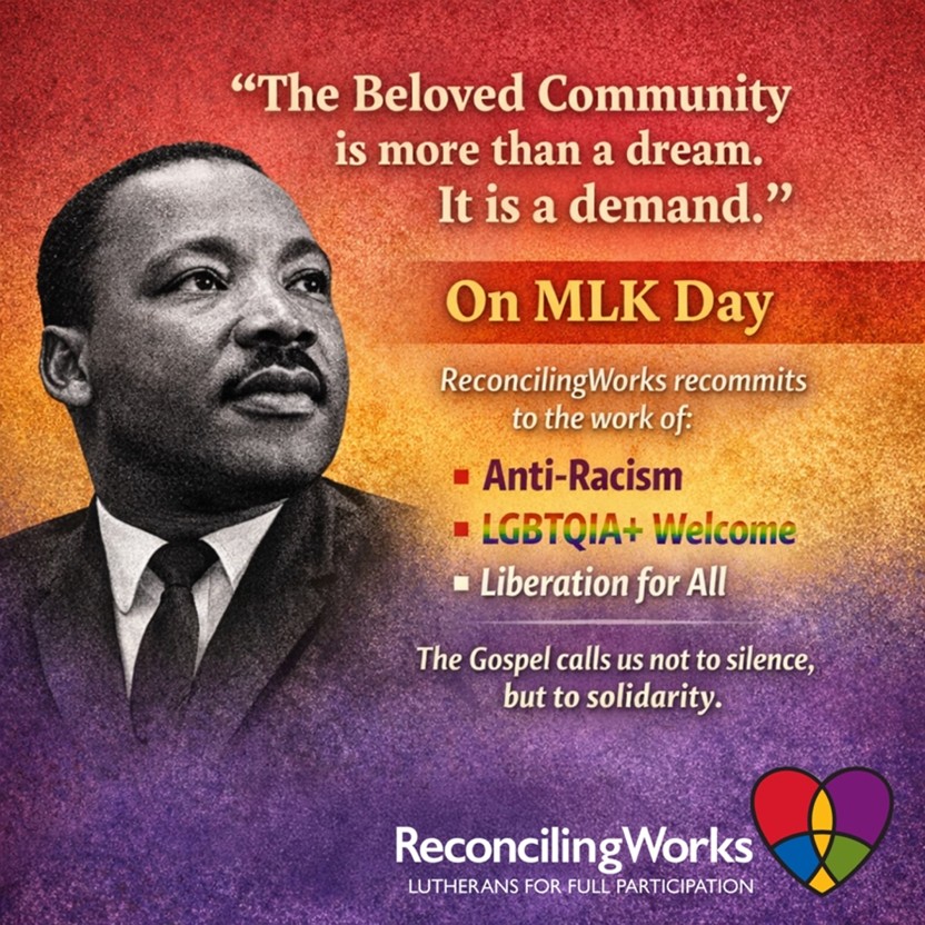 The Rev. Dr. Martin Luther King Jr. taught that justice is never inevitable — it is built through faithful struggle, collective action, and prophetic imagination. Today we remember that the Beloved Community is more than a dream. It is a demand. On MLK Day, ReconcilingWorks recommits to the work of anti-racism, LGBTQIA+ welcome, and liberation […]