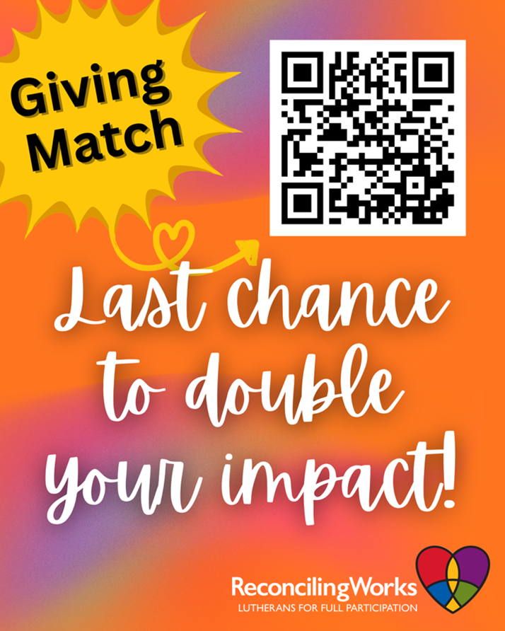 Today is the final day to have your year-end gift to ReconcilingWorks matched dollar-for-dollar through our $5,000 Board Match. As we close out the year, we’re reminded that this work still matters deeply—creating faith spaces where LGBTQIA+ people are safe, celebrated, and fully beloved. Your gift today is an act of faith and hope. Make […]