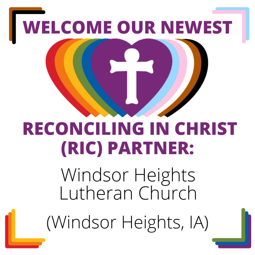 Help ReconcilingWorks welcome a new Reconciling in Christ (RIC) community: Windsor Heights Lutheran Church in Windsor Heights, Iowa. Their welcome statement reads: “At Windsor Heights Lutheran Church (WHLC), we believe that all people are created in God’s image and are beloved children of God. We are called to love and honor all that God has […]