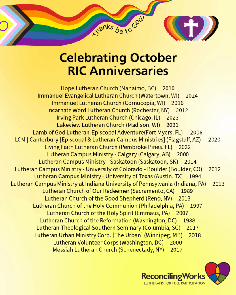 ReconcilingWorks extends deep gratitude and joy for our partnerships through the Reconciling in Christ (RIC) program.