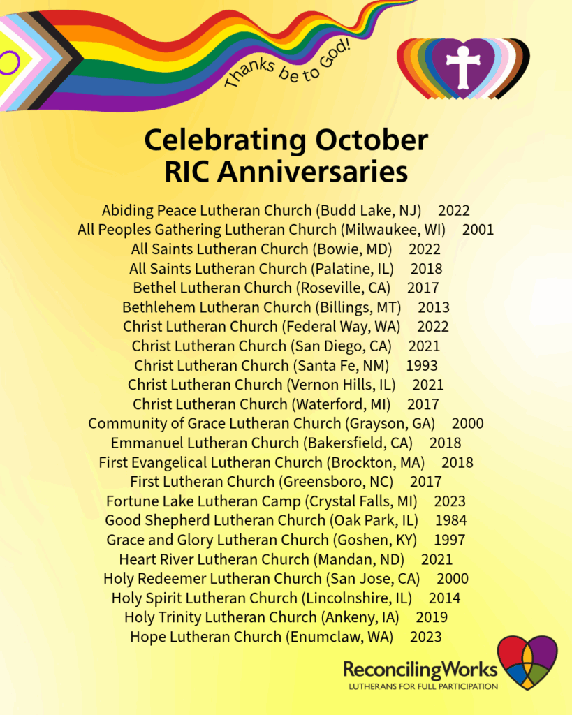 ReconcilingWorks extends deep gratitude and joy for our partnerships through the Reconciling in Christ (RIC) program.